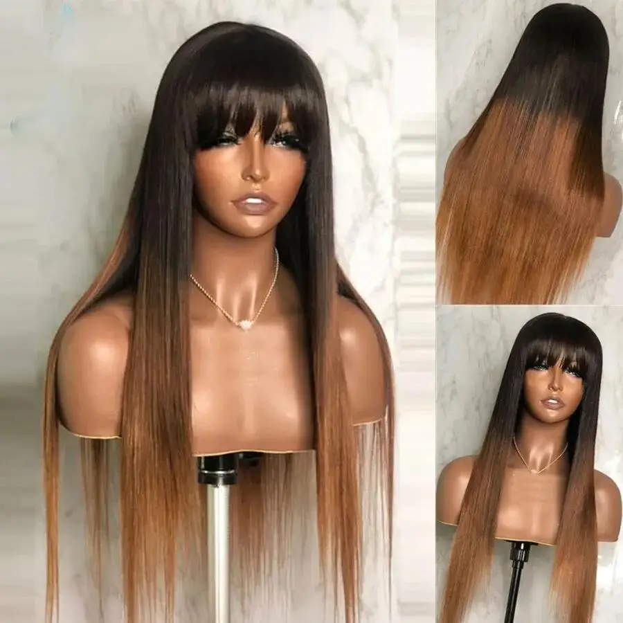 180Density Long 26Inch Soft Ombre Brown Straight Natural Hairline Lace Front Wig For Women With Baby Hair Preplucked Glueless