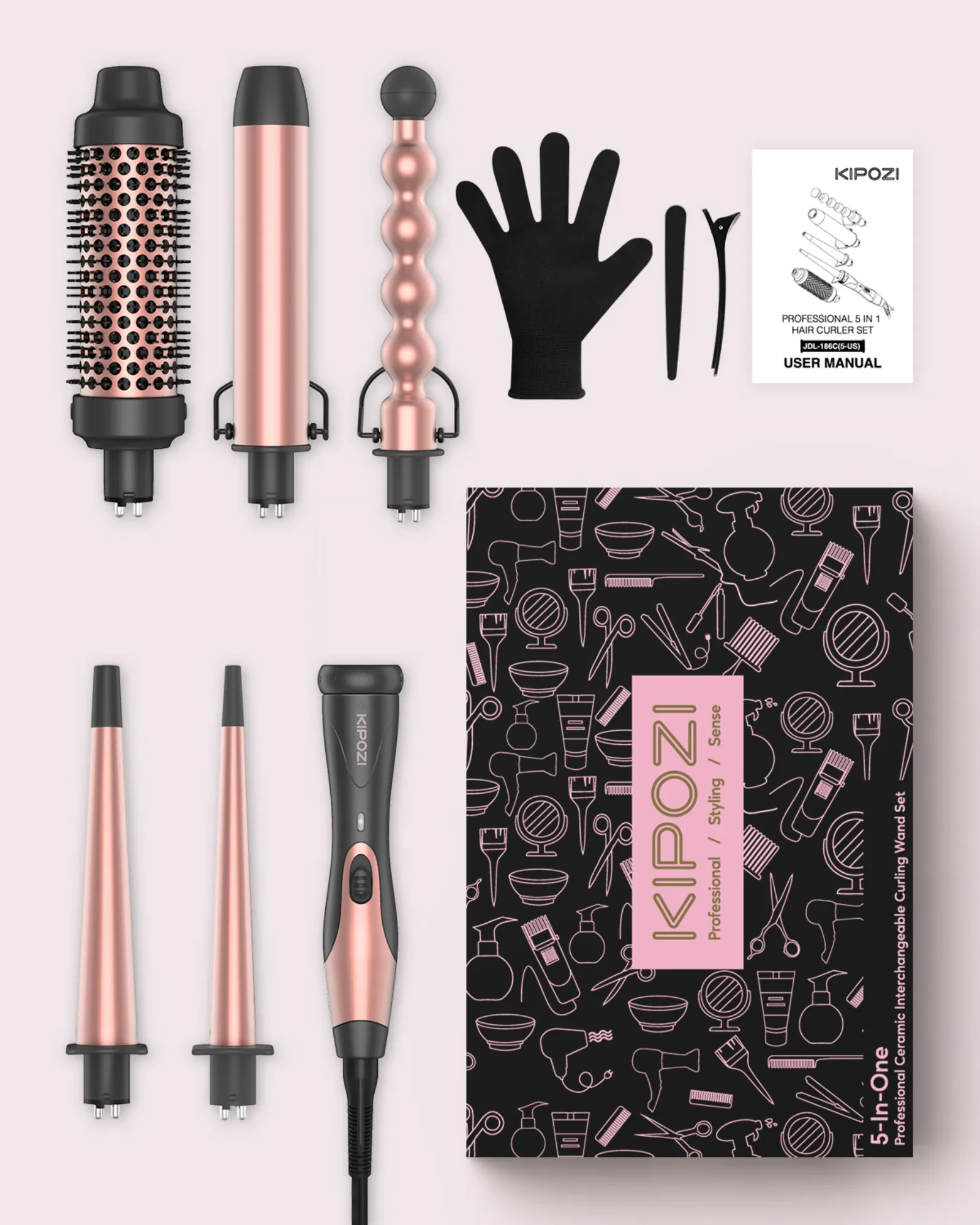 KIPOZI fer à friser professionnel 5 en 1 outils pour cheveux chauffage instantané fer à friser électrique brosse à Air chaud barils en céramique pour femme