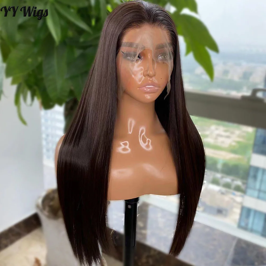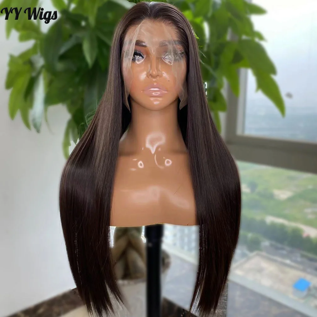 Long Brown Black Wigs for Black Women 13×6 Hair Heat Resistant 4# Color Synthetic Lace Front Wigs Pre Plucked Hairline