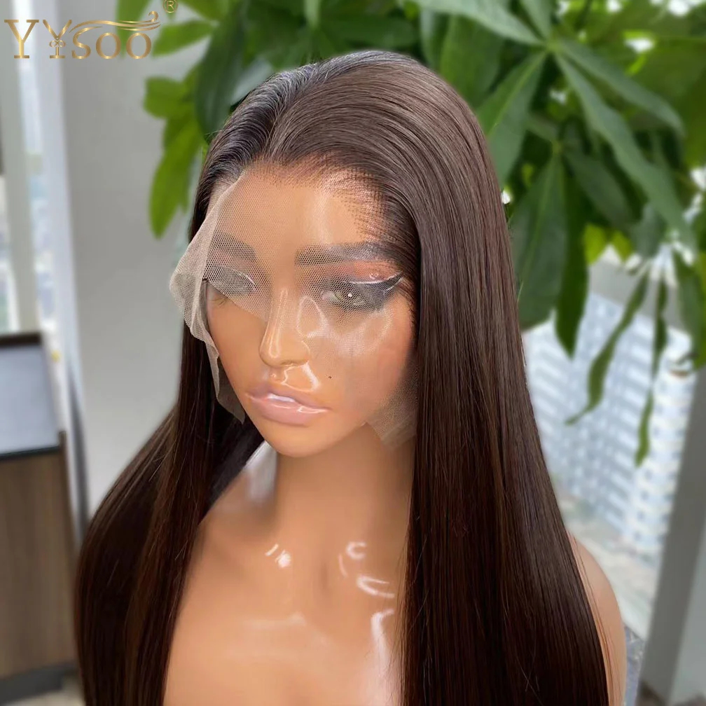 Long Brown Black Wigs for Black Women 13×6 Hair Heat Resistant 4# Color Synthetic Lace Front Wigs Pre Plucked Hairline