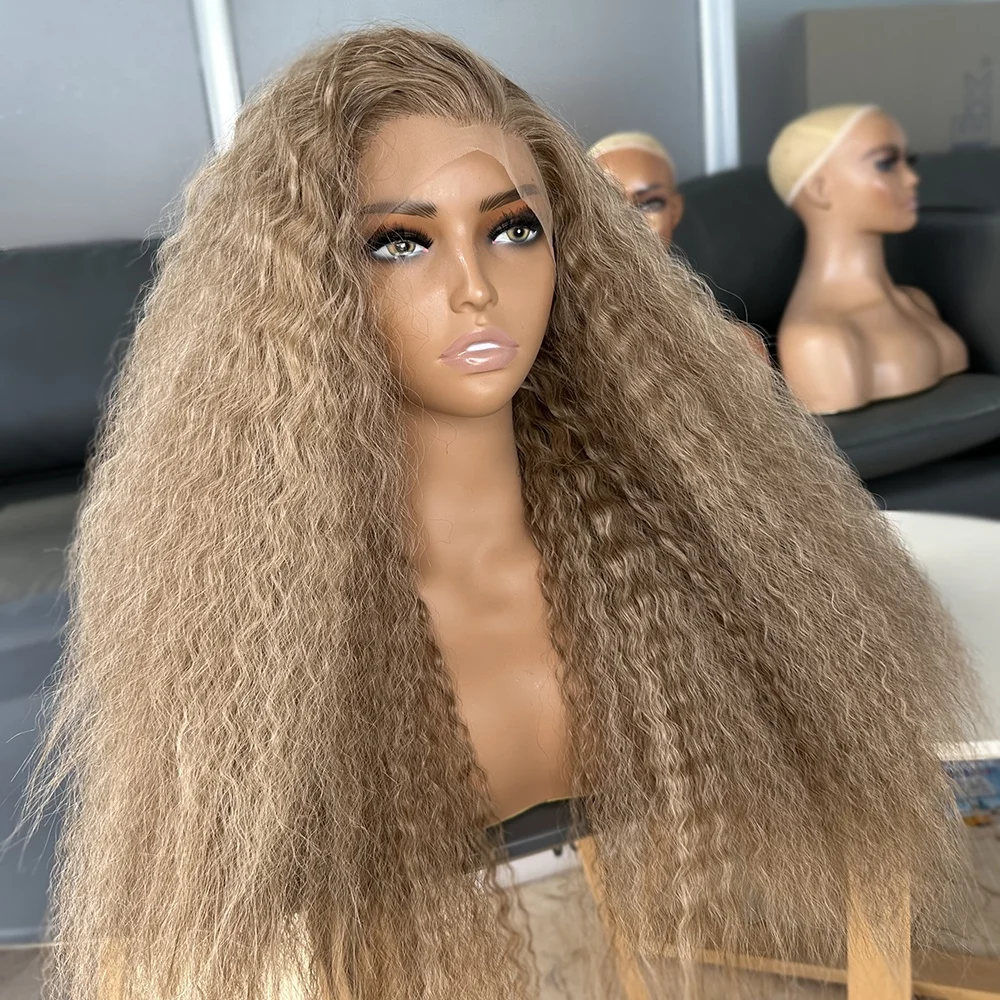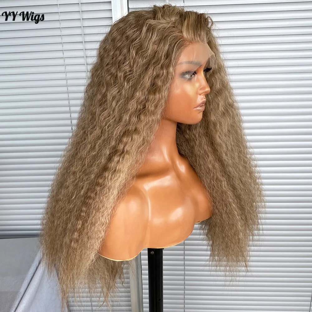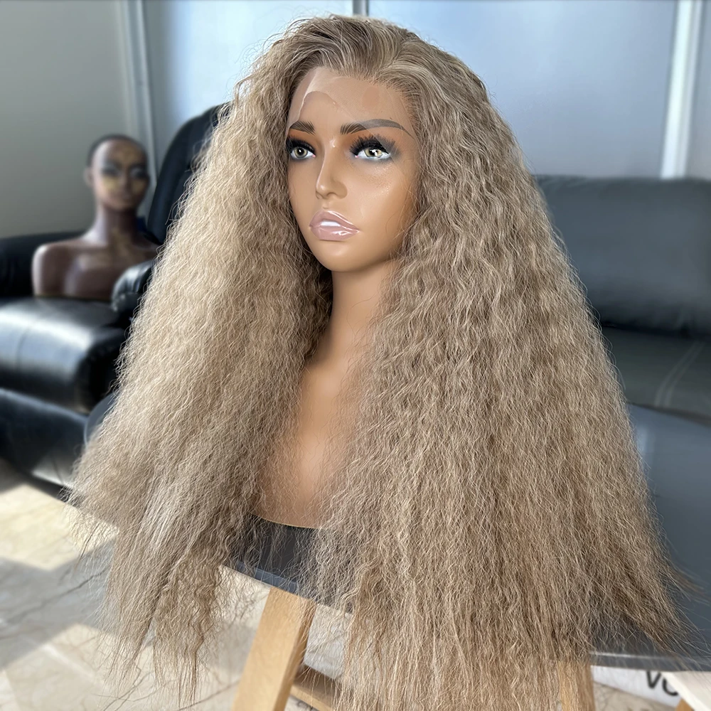 Long Ombre Highlights Kinky Straight Synthetic Lace Front Wigs Hair 13×4 Heat Resistant Front Lace Wig