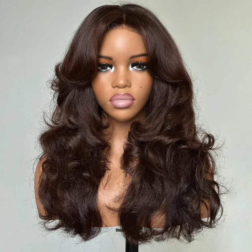 Natural Hairline Brown 26Inch Soft Long 180 Density Body Wave Lace Front Wig For Women Baby Hair Preplucked Glueless