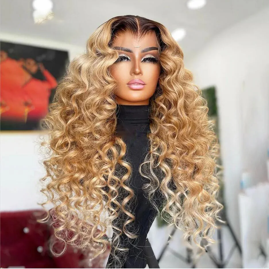 Natural Hairline Lace Front Wig 26Inch Long Soft Ombre Blonde 180% Density Kinky Curly For Women BabyHair Preplucked Glueless