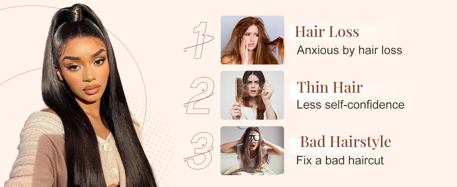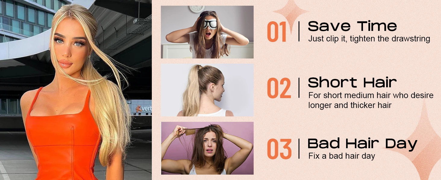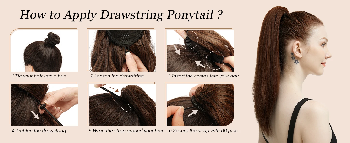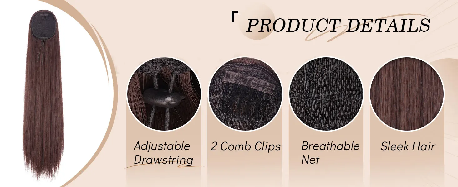 Hair Style: Long Straight drawstring Ponytail